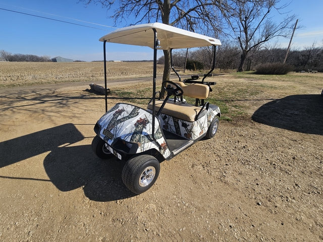Selling my 2002 gas EZGO TXT model golf cart. Winter camo wrap . Runs good. $3500 obo. Call or text 785four5twotwo4threenine.