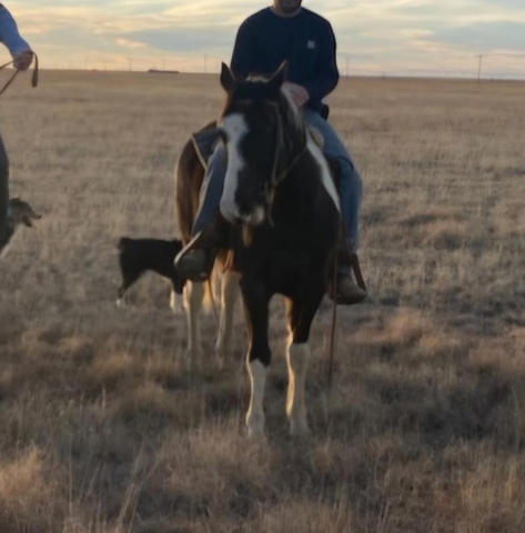 7 year old grade B&W paint gelding .Very gentle he has never offered to buck,,kick or bite . he is good for the farrier and loads in the trailer well. Contact 719-691-5802 if no answer leave a message I will return the call.