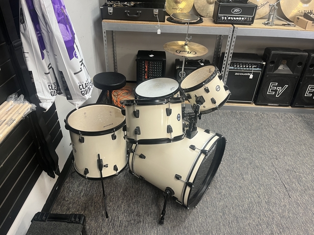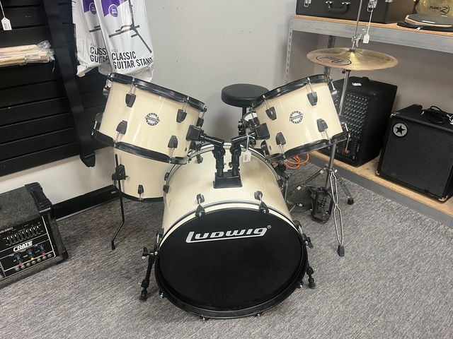 The Ludwig Accent 5-piece drum set is a versatile, all-in-one kit designed for drummers of all skill levels. Known for its reliable construction and classic Ludwig tone, this set delivers a balanced, punchy sound that works well across a wide range of musical styles—from rock and pop to jazz and blues. This drum set is in good shape and shows minor signs of use stop by Flatlander Pawn to check it out