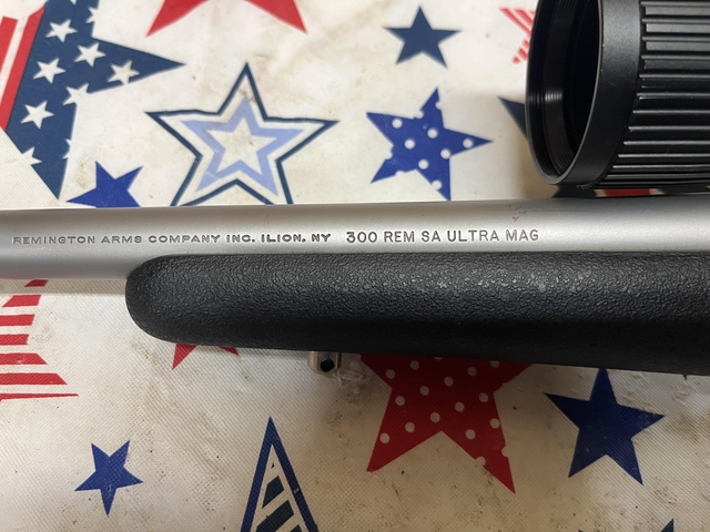 Remington Model 7 in 300 Remington short action ultra mag. Stainless synthetic near new condition no scratches. Scope not included. Open to trades for other rifles