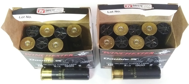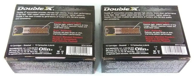 Double X High Velocity Turkey Load, STH12354. 1 box of 8 shotshells in 10-shell box. Lot No. L3SC22. 1 box of 10 shotshells. Lot No. L1SC08. Shotshells new, but in opened boxes. Boxes in good condition. 18 plastic shotshells total. $1.39 / shotshell. Unknown how all ammo have always been stored, or how old it is. However, it was probably kept mainly indoors, in climate-controlled basement. All clean. List price total for all items.