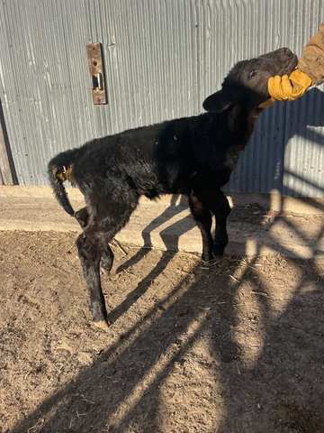 Black Angus Heifer calf, born 3-6-26 13 days old. Very well bottle broke.