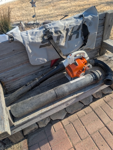 Used Stihl leaf blower shredder vacuum for sale. New fuel filter and shredder wheel. Use every day comes with all the attachments. As shown In pictures. Call 785-483-1986. Gas powered.