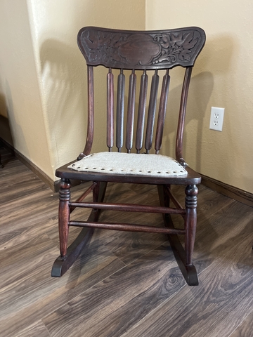 Beautiful, ornate, antique sewing rocker. has grape leaf carving on the back $50 or best offer