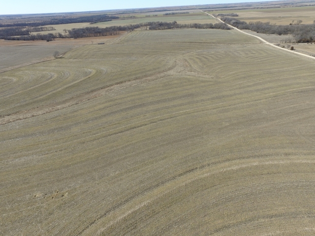 GENERAL DESCRIPTION: This tract of land has approximately 123.32 acres of cropland and 42.48 acres of grassland and waterways. On the cropland, all acres are currently drilled to wheat; the buyer will not be getting any of the wheat crop. The cropland is primarily class II, Harney Silt Loam. The grassland offers grazing potential with a pond, pit and rural water all present. It also features a creek on the West side of the property. The current electric fence will not convey to the new buyer, it belongs to the current tenant. (After the salebill was printed changes have been made, the electric fence will convey to the new buyer.)
