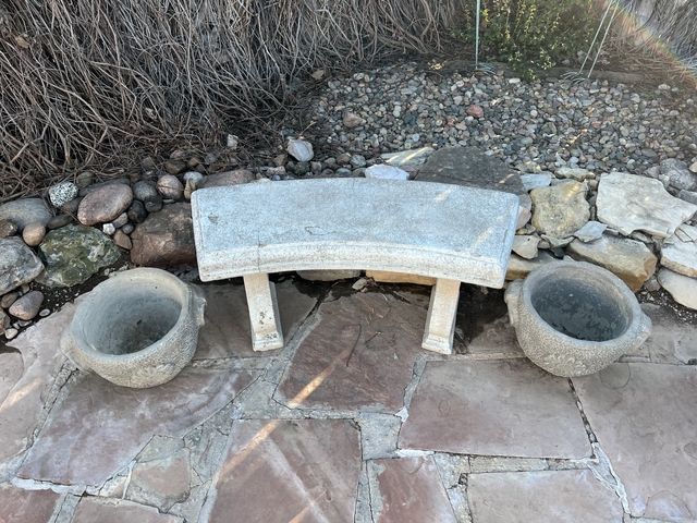 For sale is my personal concrete patio bench, arched style, with 2) concrete round planters. Some small cracks in bench but structurally still good. Price IS ONLY $40 cash u-haul. Message me to buy.