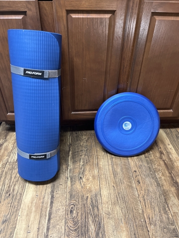 Half inch thick pro-form Pilates mat and professional therapy product Swedish disc for balance. $20