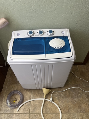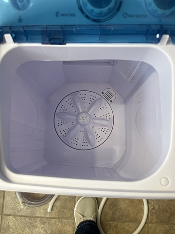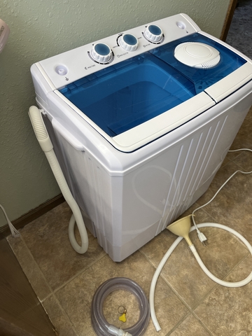 This is a truly unique washer semi automatic. The brand is Rubicon. I've had it for a year and a half works wonderful has a pump to discharge the water into your tub or sink. I have an extension hose that I added so that way it could reach further. It has a filling hose that came with it, but I just use my showerhead to fill and rinse with. Getting ready to move and just don't need it anymore. Has a year and a half warranty left. This unit is great for lingerie, baby clothes, jeans towels shirts would fit well in a camper or an RV. unit is 28 inches tall and 25 inches long can 14 1/2 inches deep