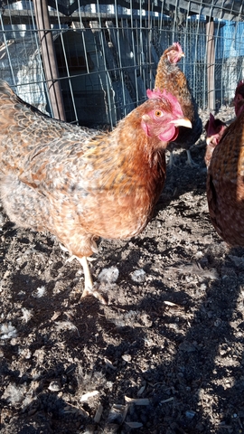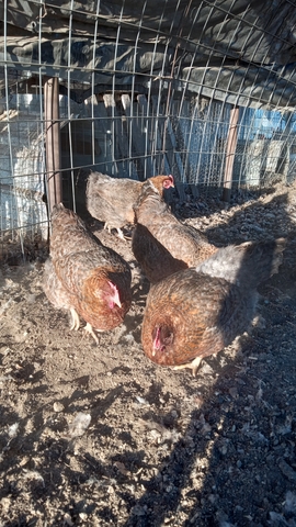 Bielefelder chicks. Auto-sexing by color at hatching, so you know what you're getting. Pullets (females) $6. Roosters (males) $1. Nice, large dual-purpose breed that lays lots of large brown eggs. Hens NOT FOR SALE, just pictured for reference.