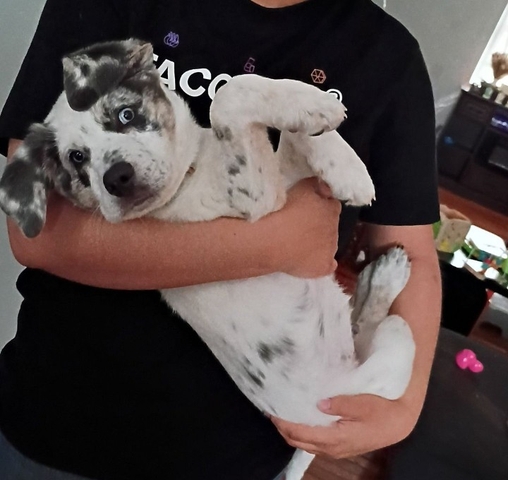 We have a puppy that needs a home. He's three months old and has had his shots. He is almost potty trained and is a fast learner. He sits and I am teaching him to shake. He is a Blue Heeler mix so he will need lots of exercise. He does not run off and herds my two dogs at the park so they don't get away. Naturally, he loves being outside. Please message me for any questions and thanks for looking!