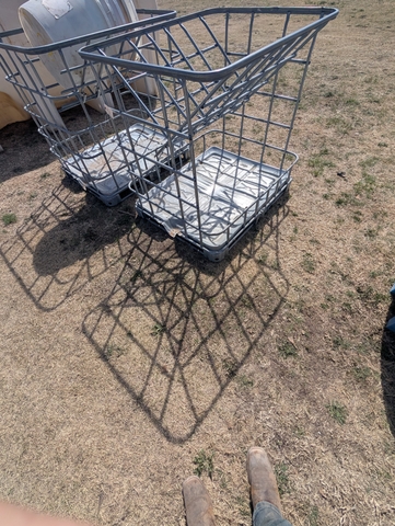 I made these two IBC tote hay feeders works great for sheep, goat and all
