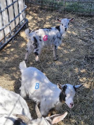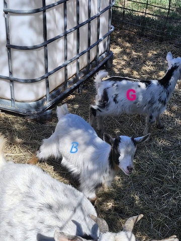 Currently 9 weeks old.. They are unregistered and do have horns. The buckling is still intact.