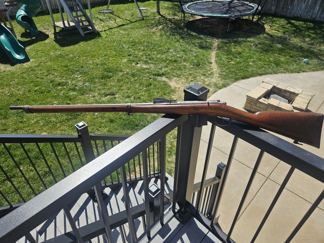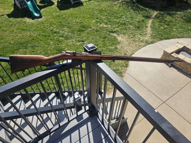 Cool old bolt action rifle. It was originally made in 1875, and converted to magazine fed in 1888