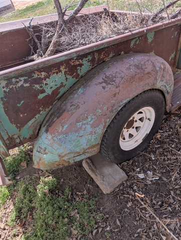 I purchased this to use the bed on a pickup but changed my mind and never got it done. Left side fender is a little banged up but could be fixed. Right side fender is really nice. Very little rust. No trades.