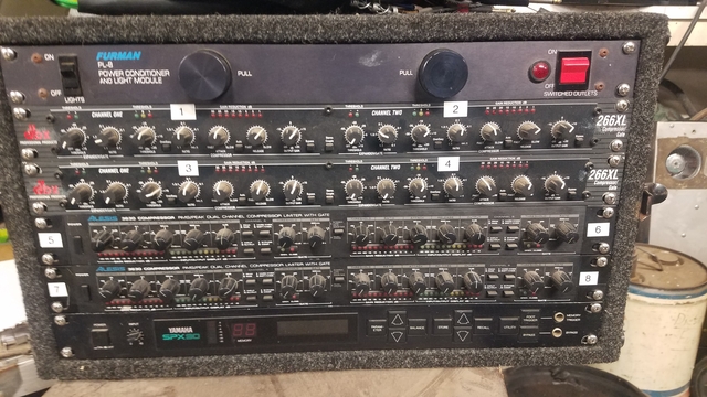 8 channels of compressor/gates and a nice Yamaha reverb. All in a rack box with power conditioner,and an 8 channel insert snake to patch the compressors in to your mixer. All worked last time I used them and have given me no problems. Cash sale, pick up in Hays.Ks. I won't ship. Thanks for having a look.