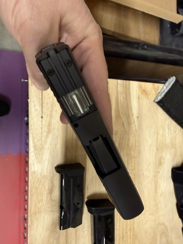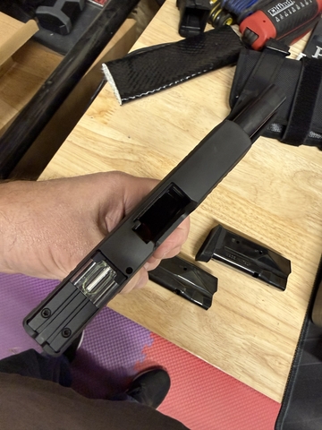 Black Striker fired a Polymer grip steel 10-round mags x 2. One has an extended finger grip.
