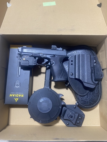 I have for sale a built Glock 19 clone chambered in 9mm. Has a grit grip lower with glock internals ($120), radian barrel and comp ($400), riton tactix 3 red dot ($300), and a solofish SL-1091 flashlight/laser combo (cheap). Comes with holster that fits this pistol without the flashlight, mag holder, one 15 round mag, a 50 round drum, a soft carry case, and everything on the pistol. Asking $800 for everything OBO. May be interested in trades. Thanks!