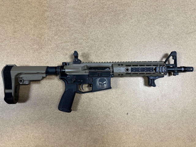 Lower is a Marked 80 Percent Arms. Battle Arms 60/90 Degree Ambi Safety, BAD Lever, Armaspec Stealth Recoil Buffer Spring System, SBA3 Brace, and Mission First Tactical Grip.