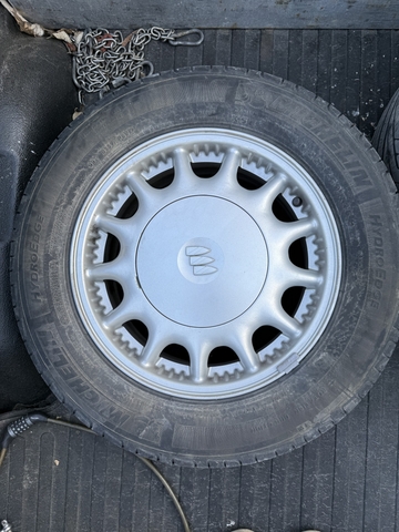 Set of Buick 5x115mm (5x4.53 inches) wheels and Michelin 225/60 R16 tires. Wheels are in excellent shape. Tires have a min tread depth of 8/32. Came off a 1999 Buick Park Ave with very low miles. Motivated to sell and taking any reasonable offers.