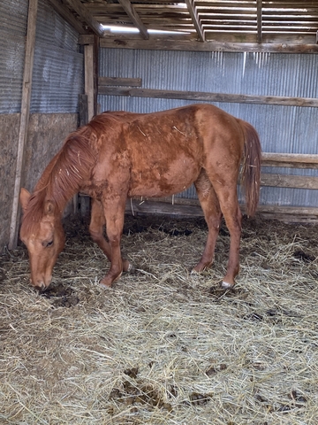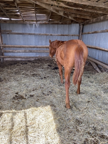 I call her Prancer. We bought her and the mare together several months ago. The mare and stud both are papered, however the studs papers never got transferred to the correct breeder so we aren’t able to get this filly papered.