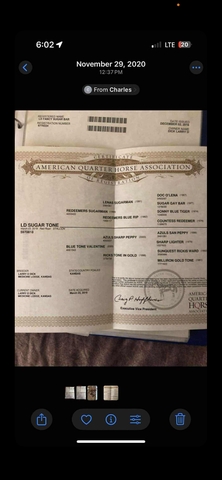 She is not halter-broke at the moment. I’d say she’s got a pretty calm demeanor. She’s a bit timid around new people, but I don’t think it takes her too long to settle down. She LOVES her butt scratches! I did post the parents papers if anyone was curious. I did manage to talk to the original breeder of the stud, but he didn’t think it was very promising tracking down the breeder of the filly.