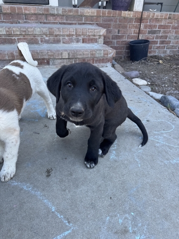 We have three male mostly black pups looking for their new family to love. These guys are ready to work and play. Mama is 80/20 Pyrenees/Anatolian, dad is 1/4 heeler 3/4 chocolate lab. These boys are super sweet, been raised around kids, chickens, cats, cows, pigs, you name it. Their mama is excellent at her job of protecting our family and livestock, their dad is young but figuring it out as well. Pups have been raised outside since six weeks of age. All have had first round of shots and will be going this week for the second round. These fellas will make excellent family/guardian companions. Free to loving homes. 316-204-0960 texts work best but please leave a VM if you call. (Added photos of parents for reference)