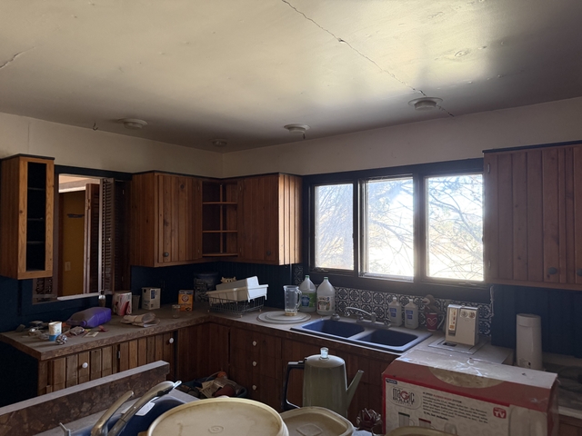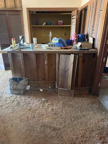 All cabinets very neat Murphy cabinet 2 sinks dishwasher built in food processor & bar. You remove you haul.