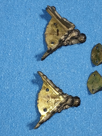 This is for an ANTIQUE MANTLE SHELF CLOCK FEET TRIM REPLACEMENT PARTS SET OF 4. EXCELLENT CONDITION. CAME OFF AN Antique Vintage E. Ingraham MANTEL Shelf Clock. EXCELLENT CONDITION. THIS INCLUDES 4 FEET AND MOUNTING NAILS. VERY CLEAN. THEY CAME OFF AN E. INGRAHAM MANTEL CLOCK.