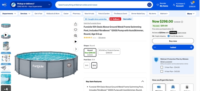$400 for the pool and accessories or $500 inlcuding the turf. Located near Bazine.