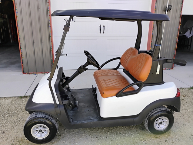 Here is a 2014 Gas Club Car Golf Cart With Head Lights, Tail Lights, Blinkers and Head Lights (installed last year). Comes with a Flag on the Back. New Folding Windshield (installed last year), New Seat Cover (installed last year). Runs great with no issues. Selling due to buying an upgraded one.