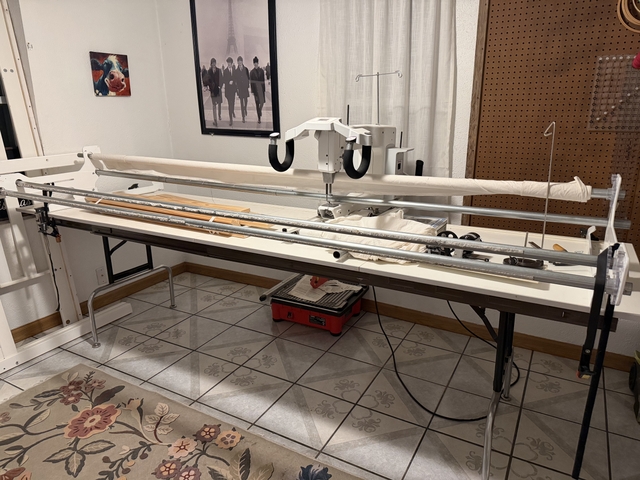 Second owner of a HQ 16 Longarm Quilting Machine. Stitch Regulated, pantographs, laser light for pantographs, bobbins, and bobbin winder included.