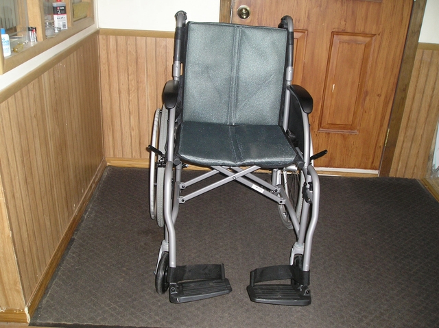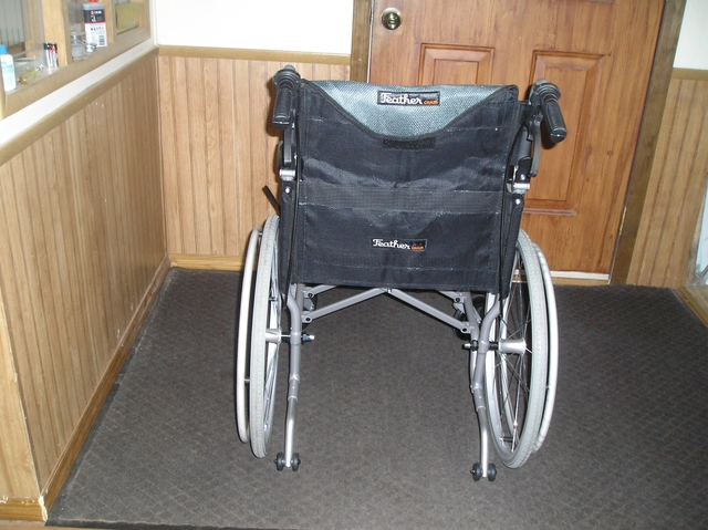 LIKE NEW EASY TO FOLD -PUT IN TRUNK - 13.5 " - 300" WEIGHT CAPACITY - HAND BRAKES- ANTI TIPPING - FOOTRESTS SWING AWAY -18" SEAT -$110.00
