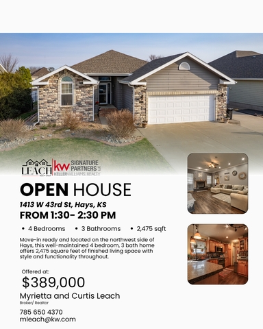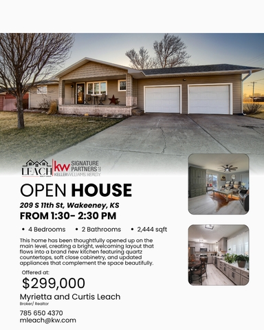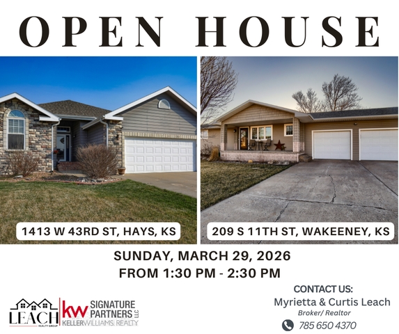 Two Open Houses this SundayCome see us on March 29 from 1:30 to 2:30 PM at1413 W. 43rd St., Hays, KS and 209 S. 11th St., WaKeeney, KSWe would love to welcome you in.