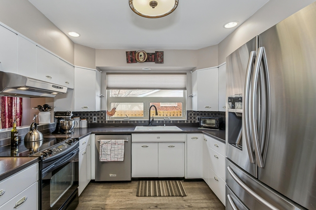✔️ Solid surface counters + classic Geneva cabinetry