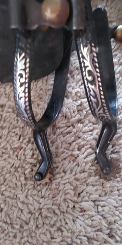 black scroll spurs or youth bull spurs 10.00 each. chrome spurs 25.00
