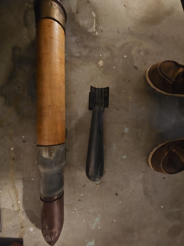 I have a grouping here. Large wood and steel shell used to train soldiers to load rounds. The gray "mortar or cluster bomb" thing is hollow. Obviously all intert and just display items. Cool for a man cave or any collector.