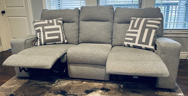 Power reclining sofa with power headrests and usb charging ports by Ashley Furniture.