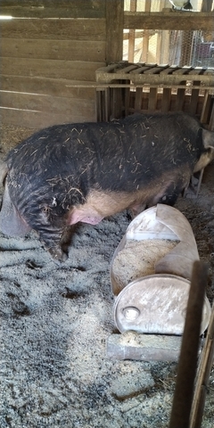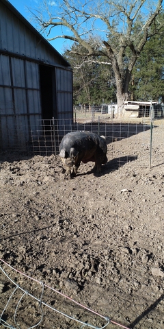 we've got a boar that's made us plenty piglets over the last three years but we're changing our breeding program and no longer need him. asking $400. we estimate his weight to be between 7 and 800lbs. if interested contact Damien at 6204195073.