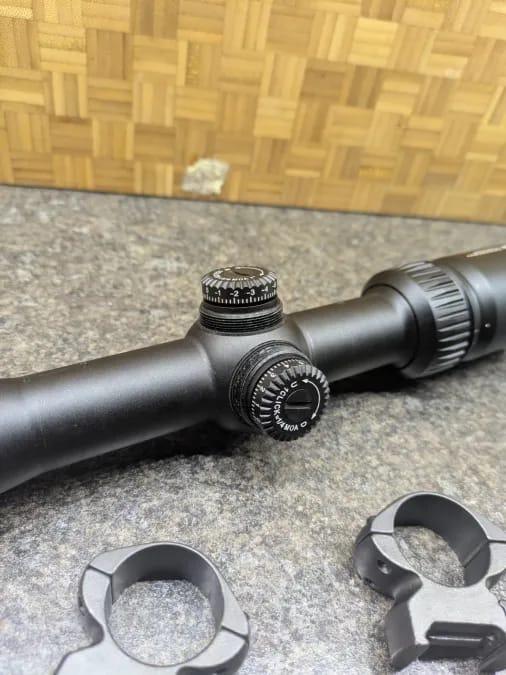 Comes with 2 low profile 1" steel scope rings. These will allow a parallel mount of the scope to a receiver/full length railwith about a 2mm gap.