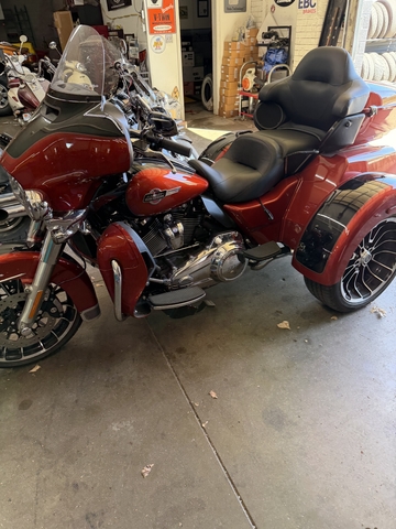 Better than new. Harley Triglide with only 579 miles. What makes it better than new. $800 Legend shocks to improve the ride. $400 custom dynamics taillights that are so bright Stevie Wonder can see them. $200 exhaust heat shields to keep the heat off your legs. Perfect condition. Still under warranty. Priced to sell