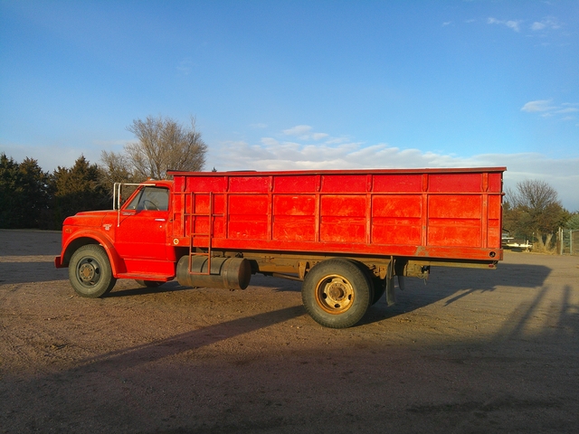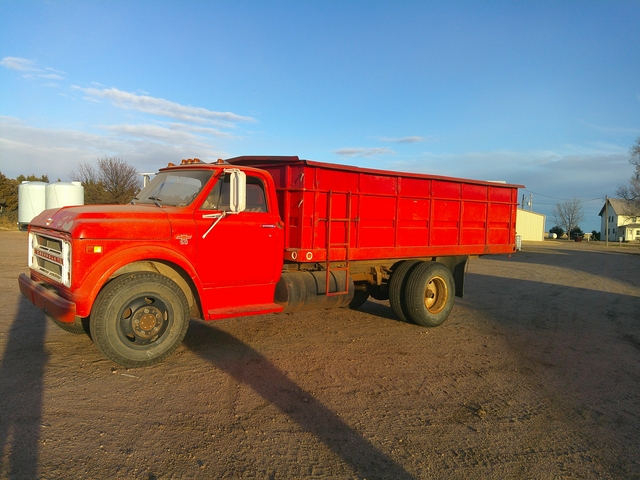 Selling a good running 1968 Chevy truck with box and hoist, the truck runs and drives like it should, 4+2 transmission, good tires, the box has steel sides and wood floor with a tarp, title is in hand, call or text 7853998020.