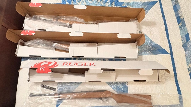 New in Factory box Ruger 10/22 model 1103 nice wood stock. Comes with one Factory magazine and scope base plate.