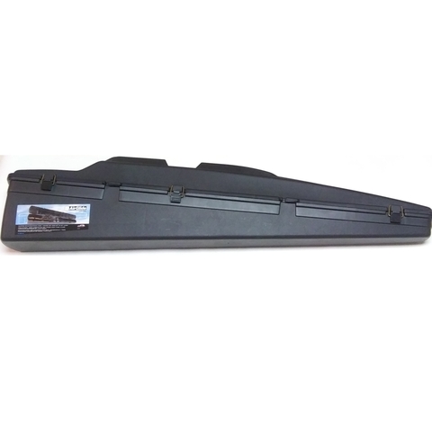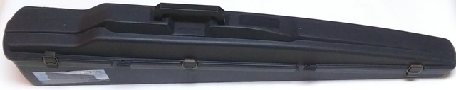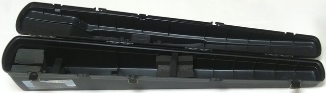 Holds any gun up to 50" long. Measured dimensions: 51" x 11.5" x 8". Cleaned. Used - good condition. Adhesive on piece that connects between two end foam pieces not adhering well. However, case functions tested good.