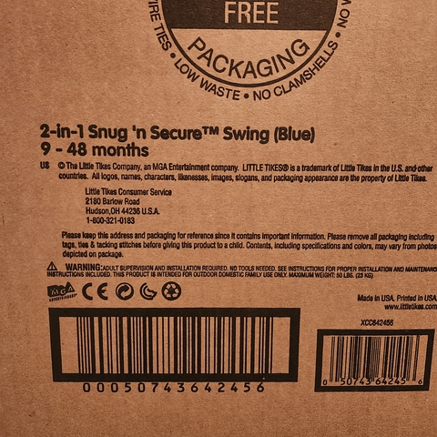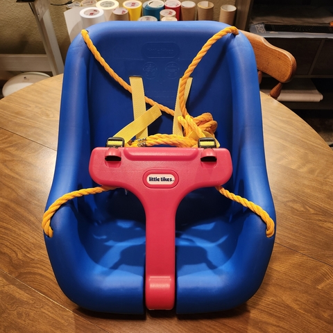 New in the box 9 month old to 4 year old child swing. Use with the restraint, or remove it for the older kids. Can deliver in Great Bend.