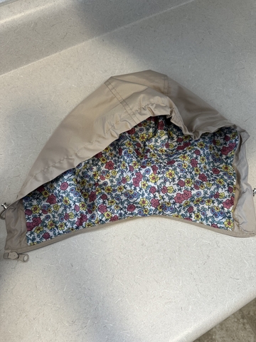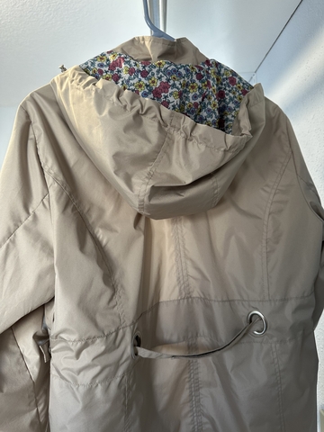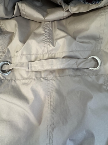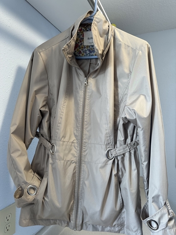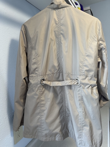 Nice barely used fully lined windbreaker with zip-off hood, adjustable side snaps and decorative grommets.
