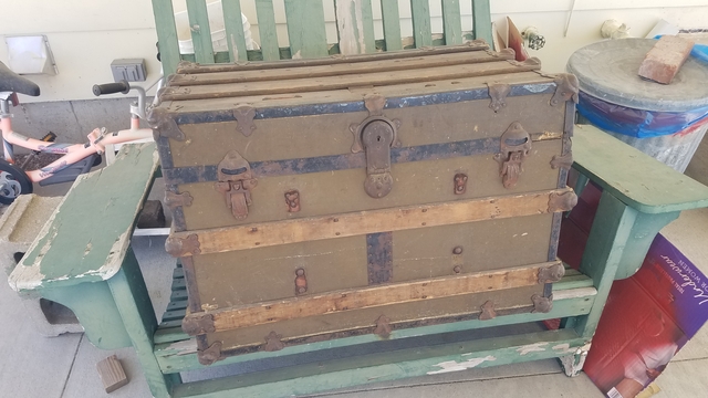 Antique trunk for sale. $50 or make me a fair offer. As pictured. Cash sale. You pick up in Hays Kansas. I won't ship or deliver. Thanks for looking.