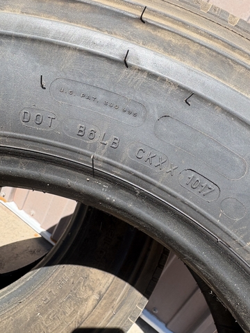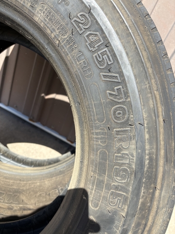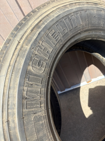 Set of two Michelin tires 245/70-19.5. About 1/4" of tread left before the wear bars. Date code of 2017.