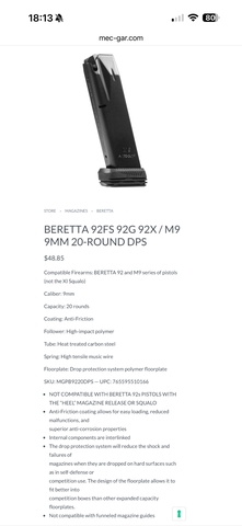 - 4-20rd MEC-GAR Beretta 92FS M9 magazines ($35ea=$140) These 4 are brand new, still in original packaging will not seperate, all 4 or none