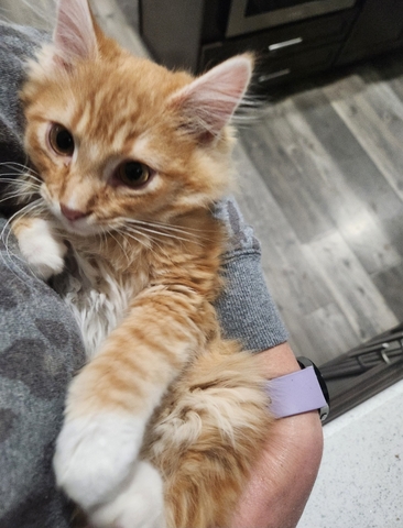 Super sweet 6 month neutered male kitten. Litter box trained, current on all vaccines including the feline leukemia. Does well with other cats, small and big dogs. We found him at about 8 weeks old outside. He has been an inside cat ever since.