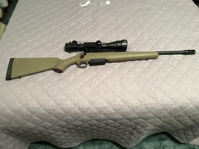 For sale Ruger American 450 bushmaster gen1 muzzle break 4x12x50 lighted reticle $500.00 one blem on receiver. Ammo avaliable